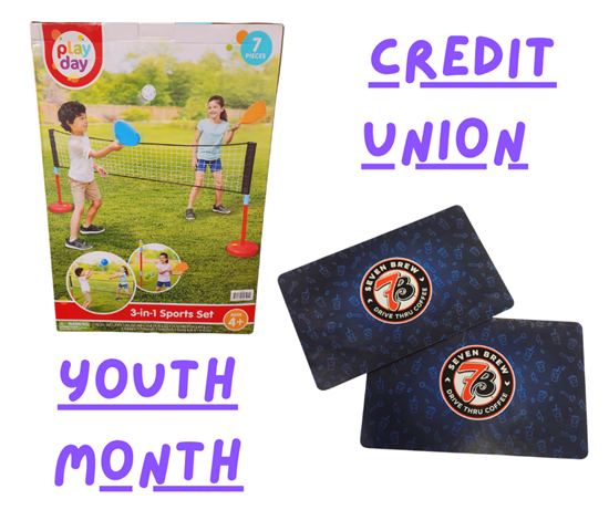 Did you know that Summit FCU has youth accounts? We welcome members of all ages. We are actually doing some “Spring Cleaning” on our youth program. We are making some changes to offer more to our younger members. First, we are celebrating Credit Union Youth month by offering a drawing for every new youth account opened in April. The prizes are sports sets for some outside fun and 7 Brew gift cards for some refreshing beverages.